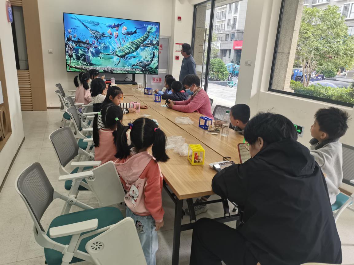 伴随孩子们满含期待的目光,活动准时拉开帷幕。科普胡老师率先通过大屏幕,呈现了一场别开生面的远古节肢动物“趣味对决”——醒目的“VS”字样搭配形态奇特的生物图像,瞬间牢牢抓住了在场孩子的注意力。随后,胡老师巧妙地从屏幕中的远古生物延伸到生活里常见的节肢动物,用生动鲜活、通俗易懂的语言,细致讲解它们的独特特征与重要生态价值。孩子们全程全神贯注,在这场兼具视觉冲击力与知识密度的科普盛宴中,轻松收获了关于节肢动物的丰富知识。