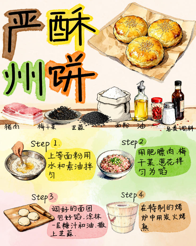 在“建德味道”的美食图谱中,严州酥饼无疑是一颗耀眼的明珠。这款原名严州干菜烧饼的传统名点,堪称酥香界的“天花板”——金黄酥脆的饼皮层层叠叠,咬下的瞬间“咔嚓”作响,松脆质感在齿间迸发,干菜的咸香与肉油的醇厚交织融合,清香扑鼻,余味悠长。追溯其源,这抹美味竟藏着一段传奇故事:相传唐朝开国元勋程咬金早年以制饼为生,战乱中流落严州府(今建德梅城)开起烧饼店。一日多做的两炉烧饼未能售罄,他夜间以文火复烤,不料肉油尽数渗入饼皮,让烧饼口感更添酥香,从此这种做法广为流传,因产自严州而得名“严州酥饼”,成为代代相传的味觉记忆。