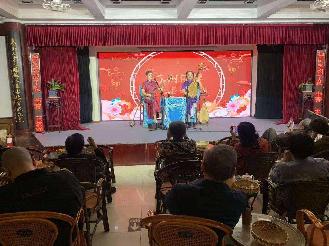 书场弦音起,雅韵润人心。活动伊始,大华书场的评弹演员身着传统服饰登台,以细腻柔婉的吴侬软语、悠扬婉转的唱腔演绎经典曲目。温软的曲调裹挟着江南水乡的灵秀气息,让居民们瞬间卸下城市快节奏的疲惫,沉浸于传统艺术独有的宁静与雅致之中,感受非遗文化的深厚底蕴。