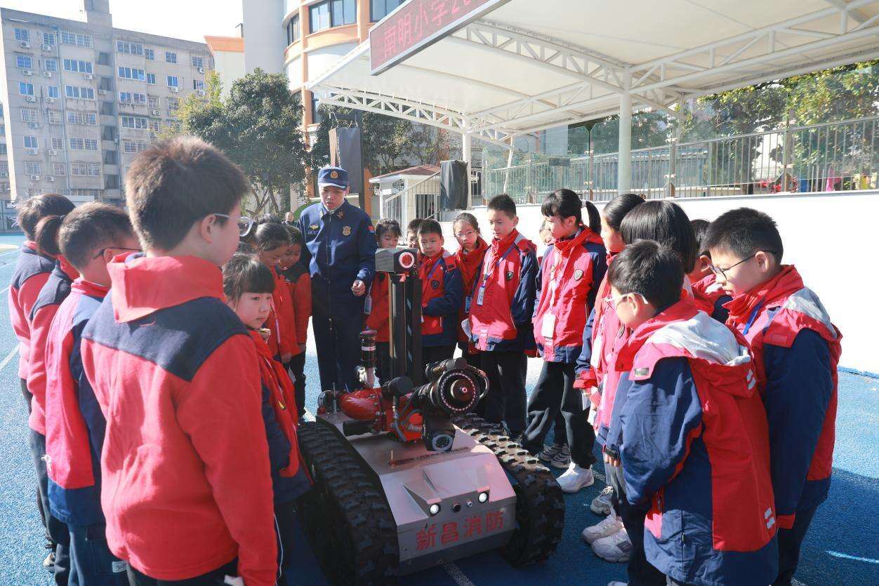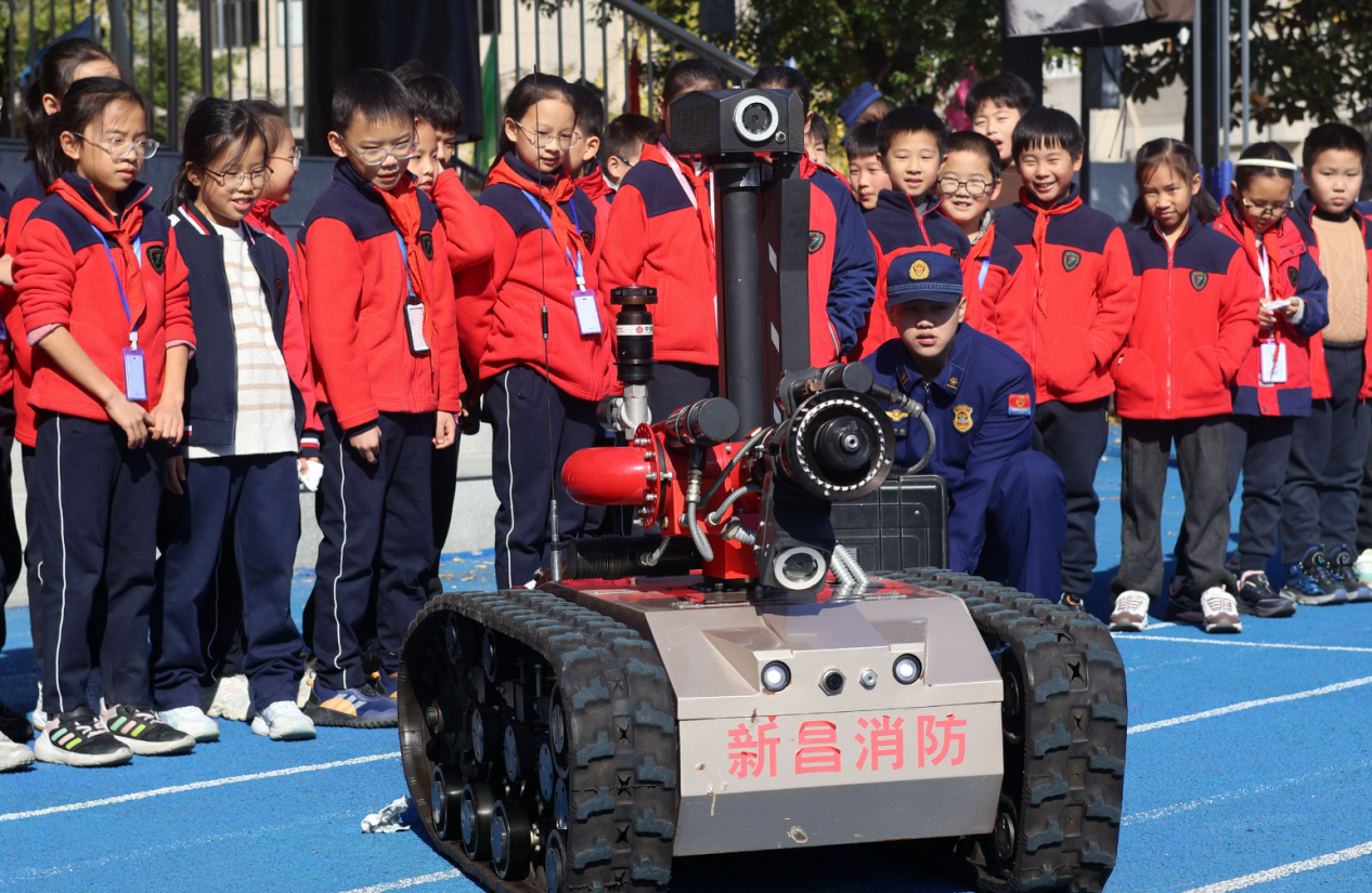 浙江在线11月21日讯(通讯员 裘红霞 汪嘉婷)“哇!这机器人居然有侦察+远程灭火双技能!”,11月20日上午,新昌大队带着“硬核”消防装备——消防机器人走进南明小学,为师生们带去了一场沉浸式的消防安全科普展示,让他们感受科技消防的魅力。