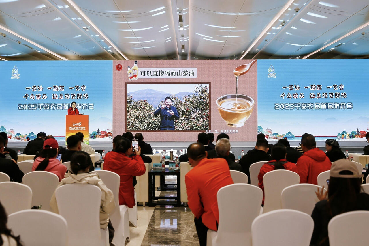浙江在线11月24日讯通讯员 孙珞今天上午,2025浙江农业博览会系列活动之“千岛农品”新品推介会在杭州国际博览中心举行,以“一壶油、一碗面、一支膏——千岛农品,让生活更鲜活!”为主题,集中展示淳安优质农产品的魅力,搭建产销对接桥梁,为“千岛农品”区域公用品牌发展注入强劲动力。