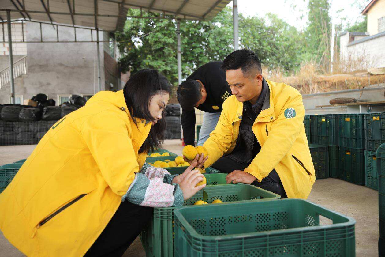 千里之外,四川省广安市武胜县中心镇象鼻村的柚香谷种植基地同样硕果累累。去年采用高换嫁接技术培育的香柚树今年首次挂果,标志着基地正式投产。放眼望去,果实饱满、枝头低垂,工人们正忙着采摘、分拣。