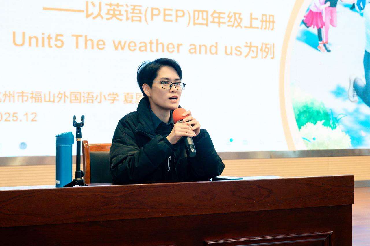 杭州市福山外国语小学正高级教师夏恩力通过分享教学实例,对三节课进行了细致点评,展示了如何将单元教学与主题意义紧密结合。随后夏恩力老师根据2025版新教材进行了《主题意义引领的单元整体教学设计》讲座,以英语(PEP)四年级上册 Unit5为例,重点强调小学英语课堂教学可按三步推进:一是匹配主题与教学内容,不契合则及时调整;二是核查AB部分问题适配性,确保主题意义连贯;三是梳理课文与问题对应关系,明确talk 和learn的课型把握。关于拼读教学,夏老师也给大家指点了迷津,设计书写活动时要注意减轻学生负担,提升课堂效率。 最后,夏恩力老师详细解读了教学评一致性的重要性,提出评价既要突出本课教学重难点,又要对学生的输出进行指导和提升,真正实现以评促学,以评促教。