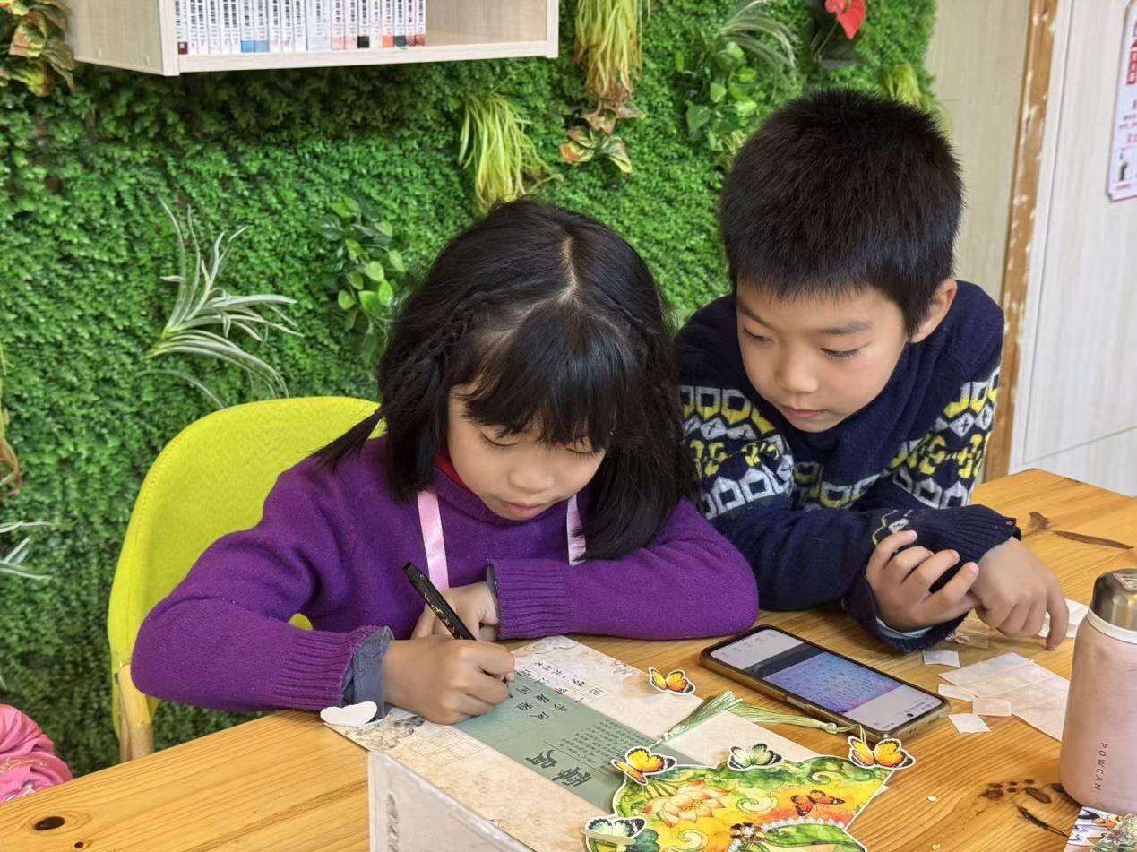 主讲人结合PPT课件与云肩实物,生动讲解云肩的历史演变、经典形制及纹样背后的吉祥寓意,让参与者直观感受非遗文化的深厚底蕴。小朋友们和家长在特制卡纸上,以硬笔书写“衢州有礼”“崇德向善”等名言佳句,将文字之美与文化内涵相结合,在工作人员指导下,大家按照云肩模板对书写卡纸进行折叠、拼贴与组合,将平面书法转化为立体摆件,实现非遗技艺与现代手工的创新融合。此次活动以“云肩”这项服饰非遗与书法艺术为载体,通过知识分享与动手创作,既让未年人及居民在沉浸式体验中感受传统纹样之美、笔墨书法之韵,实现非遗文化的创造性转化与创新性传播,也让“衢州有礼”的城市精神深入人心。