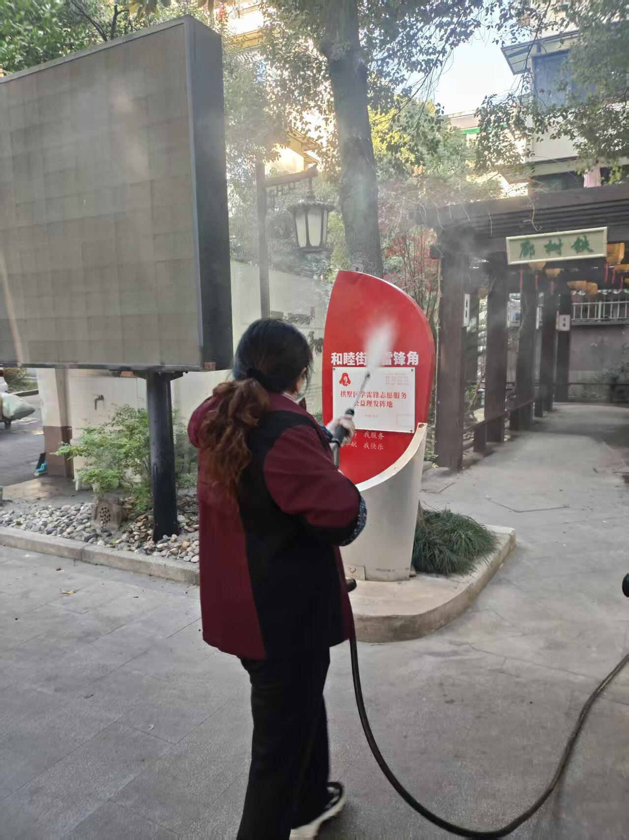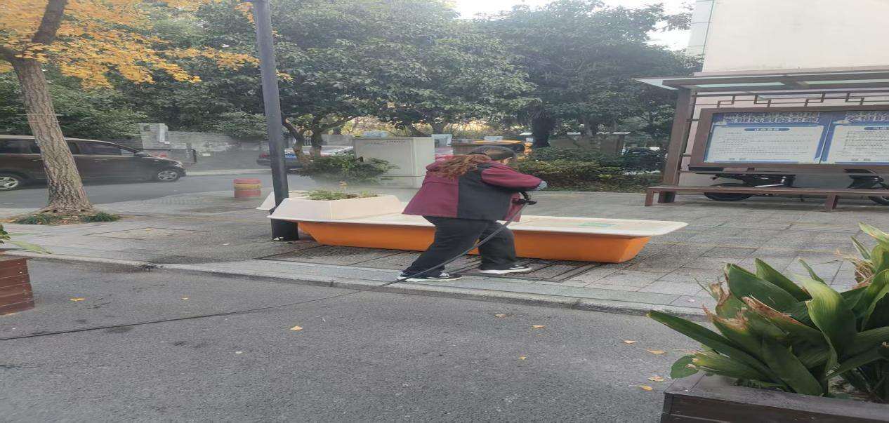 为改善这一现状,在拱墅区综合行政执法局的指导下,社区牵头组织工作人员开展全方位整治工作。行动前,社区网格员对辖区内广场、楼道周边的城市家具进行逐一排查,明确清洁重点与责任分工,行动中,保洁人员分工明确、协同合作。不怕脏、不怕累,手持清洁工具,对每一处城市家具展开细致清理。不放过任何一个卫生死角,同时,对排查中发现的损坏设施及时登记上报,协调物业及时修缮,确保设施正常使用。