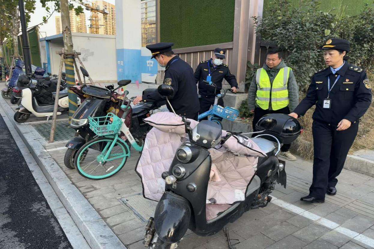 针对非机动车“见缝插针”、停放失序、反复回潮的难题,中队创新推行“同颜色分类、同方向排列、同区域停放、同规范管理、同责任维护”的“五同管理法”。通过召开多方协调会,联动街道城市建设管理办公室、社区、地铁公司、单车企业、物业、商户、工地等多方主体,明确责任分工,制定清理时刻表,落实“分区管理”“分时管理”。单车公司加强源头调度与定时清运;工地、商户落实“门前三包”;社区及志愿者开展引导服务。多措并举下,车辆实现“顺向停放、划线归位”,停车入框率提升至90%,有效释放车位冗余空间20%,曾经的“拥堵点”逐步转变为“风景线”。