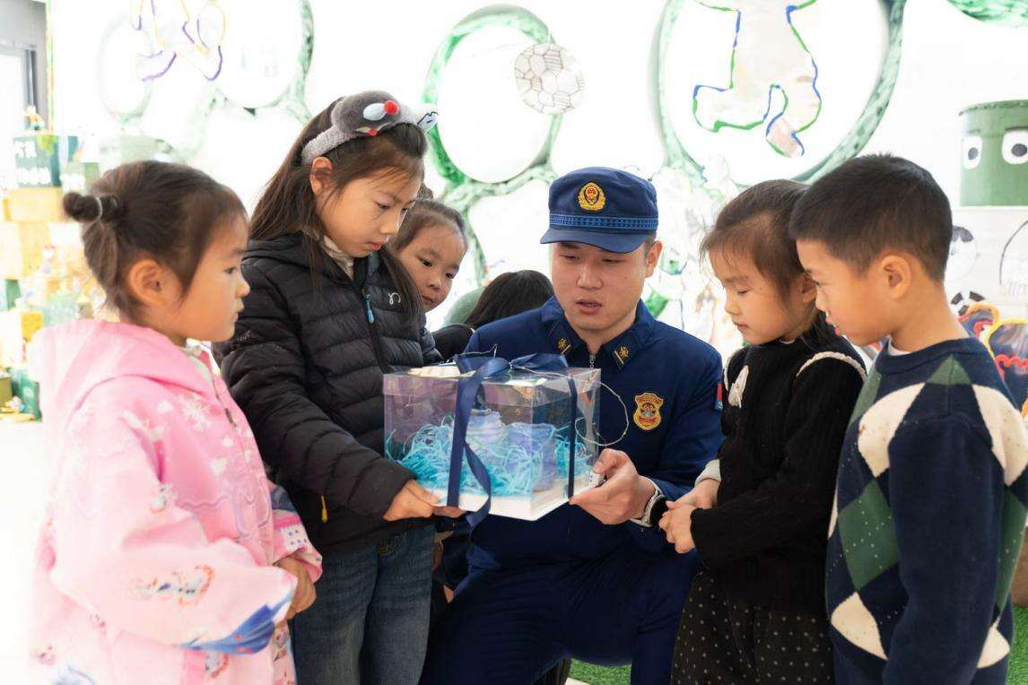 9时30分,等待许久的幼儿园小朋友们手捧亲手制作的手工制品,用最真挚的笑容迎接消防员叔叔的到来。园长在致辞中说道:“消防员是和平年代最勇敢的守护者,他们默默守护着我们的安全。今天,我们不仅一起迎接冬至,更希望孩子们从小学会感恩,记住这份温暖的守护。”随后,孩子们将承载着祝福的手工作品送到消防员手中,稚嫩的祝福声声入耳:“消防员叔叔,你们要平安回家!”