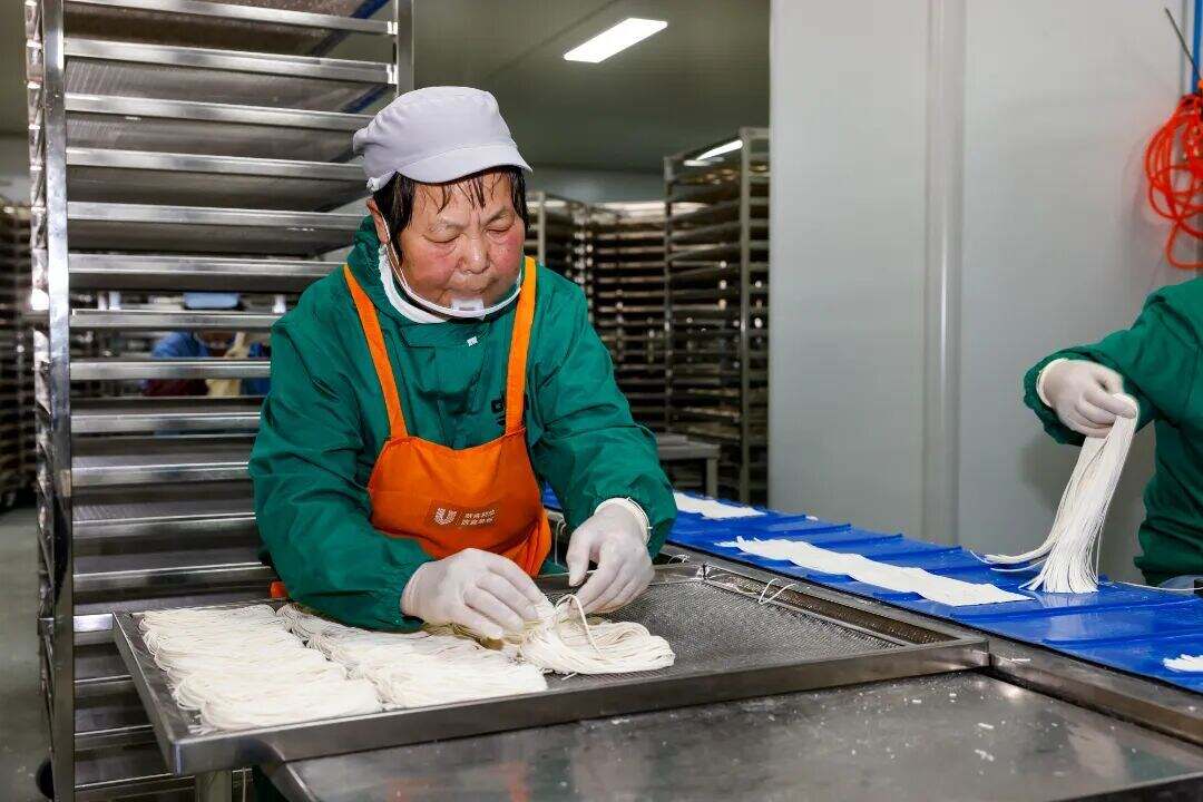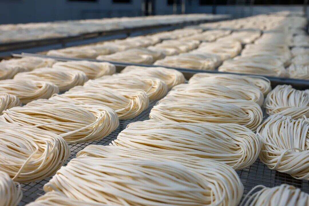 步入杭州千岛湖口叭叭食品有限公司生产车间,面粉清香迎面而来。生产线旁,身着全套防护的员工正专注操作,和面、压延、切条各环节井然有序。伴随着机器规律地运转,一根根匀称的面条不断产出,送往下一工序。