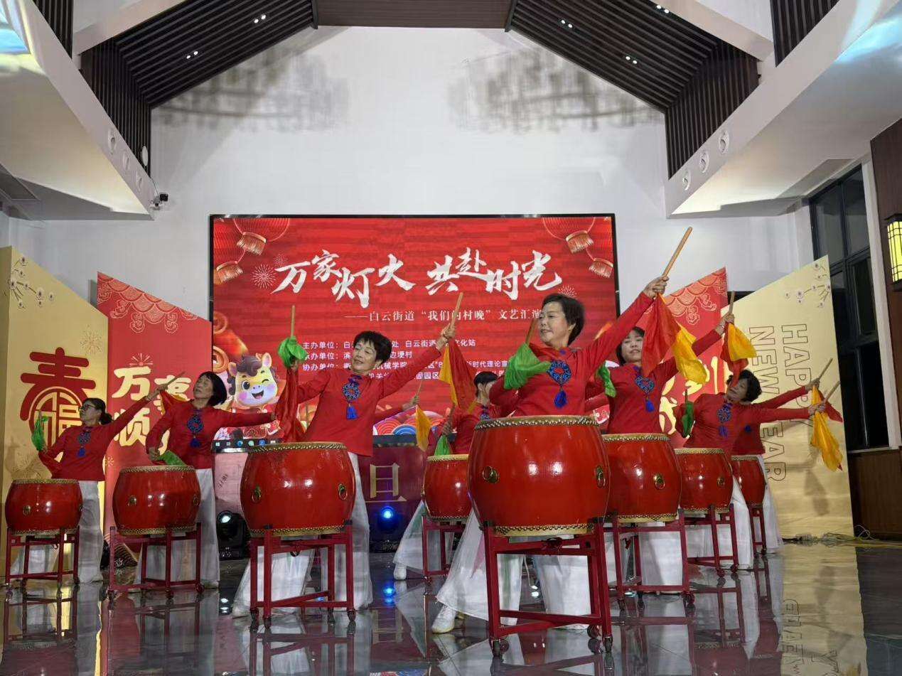 作为白云街道年度文化惠民工作,本次“村晚”不仅是一场文艺演出,更是基层治理创新的生动实践。演出中,拾光艺术团的《花开中国》、河边埂村腰鼓舞《盛世中华》等节目,以舞蹈语言礼赞家国情怀,将个人命运与时代发展紧密相连;而《衢州古城创5A》等本土题材创作,则通过艺术化表达激发居民对家乡的认同感与自豪感。此外,活动通过“村社校联动”机制,整合高校、幼儿园等资源,形成“文化资源下沉、服务精准对接”的良性循环,为基层文化供给提供了可复制的样本。以‘村晚’为切口,探索出一条‘文化育民、文化惠民、文化乐民’的治理路径,为乡村振兴与城市更新提供了文化动能。”