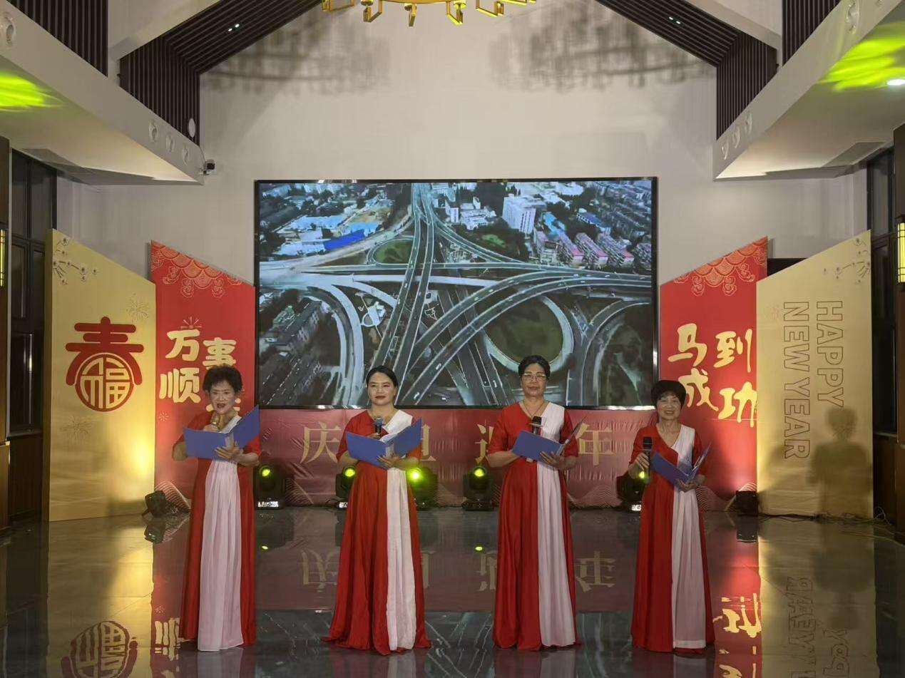 本次“村晚”突破传统文艺演出模式,通过“党建引领、群众参与、社会协作”的创新机制,汇聚了辖区内村社居民、高校学子、学校师生、理论宣讲员、退休文艺爱好者等12支表演队伍,涵盖老中青幼四代人,实现“全龄段参与、全领域覆盖”。演出节目单中,既有河边埂村锣鼓舞《中国龙》的磅礴气势,也有衢州学院学子《爱你》的青春律动;既有兰园幼儿园《福气要来到》的童真萌趣,也有夕阳美艺术团《百年长歌》的红色传承。值得关注的是,柯城区“8090+”新时代理论宣讲团以《决战学习之巅——柯城论“学”》创新理论传播形式,将政策宣讲与文艺表演深度融合,让理论“声”入人心。这种“政府引导+社会协同+群众主体”的模式,不仅激活了基层文化资源,更构建起“人人参与、人人共享”的文化共同体。