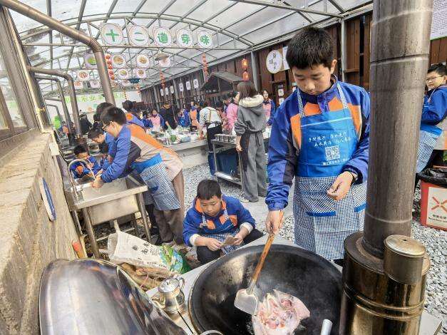 芽味厨房里,班级芽味秀正火热进行,同学们正以小组为单位,合力完成年级三道芽味,家长和老师们担任评委,为各小组实践评价打分。洗菜、切菜、烧火、烹饪……禾芽小厨们分工合作,不一会儿,“鱼头炖豆腐” 的鲜香、“辣椒炒肉” 的香辣、“炒年糕” 的软糯,混着孩子们的笑声,在厨房里飘出老远。