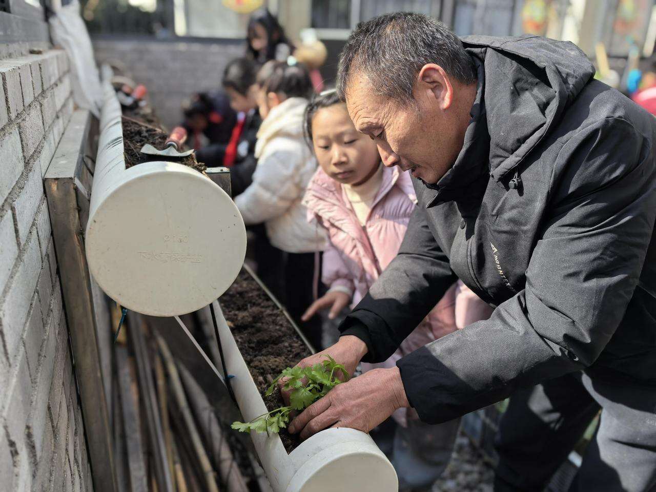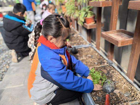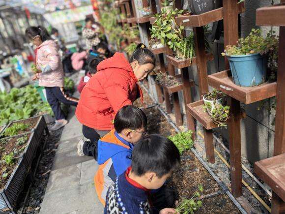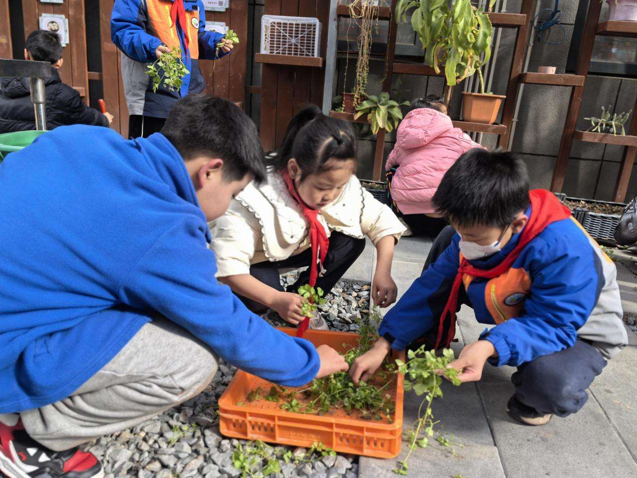 周五的阳光正好,三2班的同学们来到禾芽菜圃的“芹菜专区”。在张师傅的指导下,他们翻土、选苗、栽种、浇水,每一步都一丝不苟。孩子们蹲在菜畦边,轻轻抚摸着刚播下的芹菜苗,眼神里满是期待。班主任黄老师笑着说:“这不仅是劳动教育,更是生命教育。”班级群里,家长们也纷纷点赞。