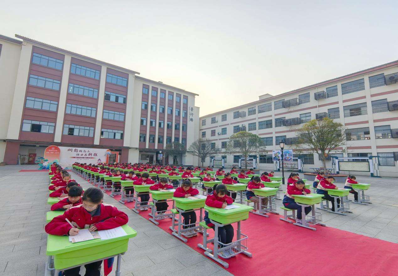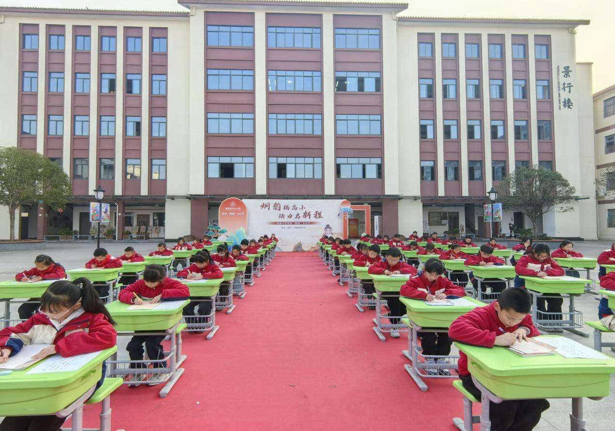 百人书写大赛现场气氛紧张而热烈。孩子们全神贯注,坐姿端正,一笔一划地认真书写着杨炯清廉诗句《从军行》以及英语清廉诗句。他们笔下的字迹刚劲有力、规范工整,充分展现出扎实的书写功底和严谨认真的学习态度。
