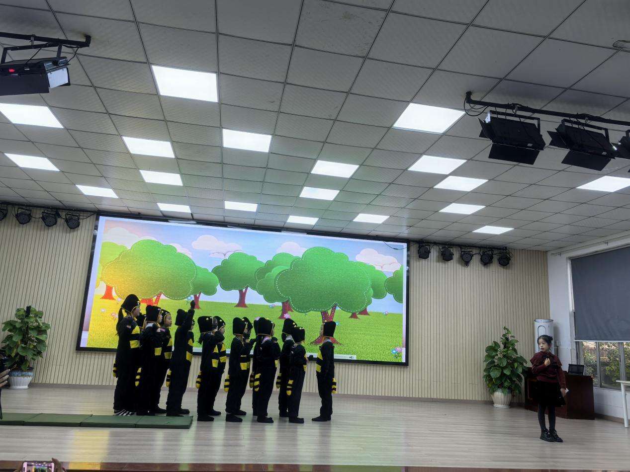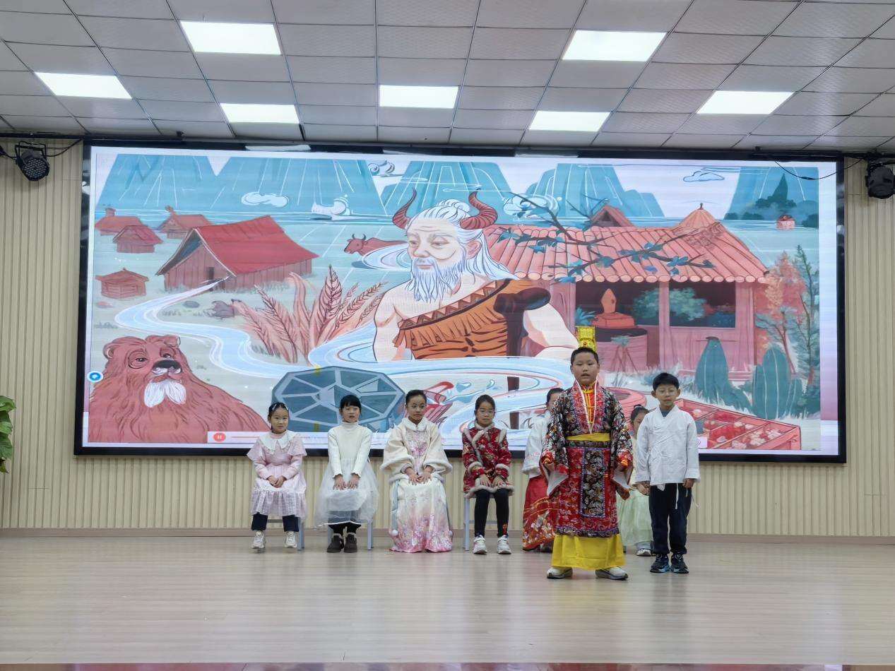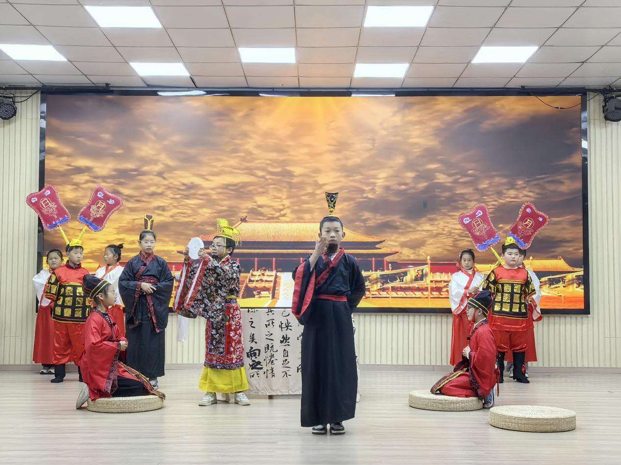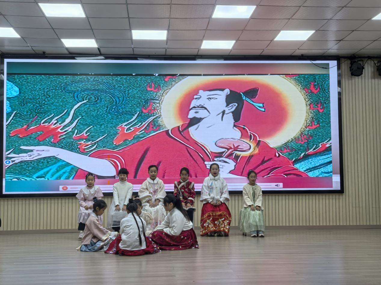 动态课本剧展演则将活动推向了高潮。小演员们身着特色服装,自信满满地登上舞台,用流利的中英文生动演绎着经典故事。活动在一二年级同学带来的纯美诗朗诵《春晓》《古诗中的童年》中拉开序幕,那清脆悦耳的童声,仿佛将大家带入了一个充满诗意的童年世界。