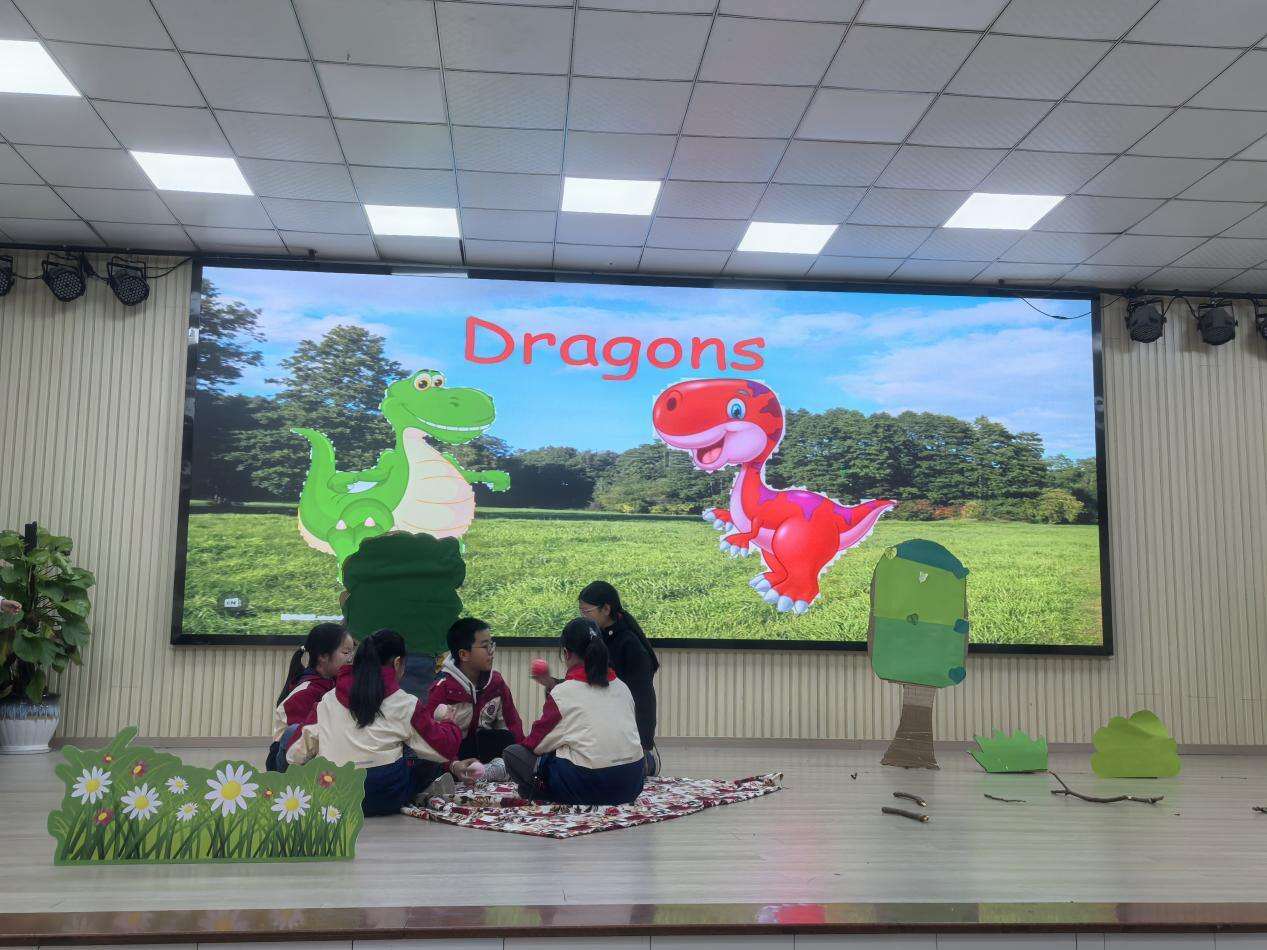 压轴登场的五六年级同学更是展现出成熟的舞台风采,他们通过《完璧归赵》《桥》以及英语剧《Mencius's mother moved three times》《Dragons》等节目,充分展现了跨文化的魅力。整场展演将书本中的文字转化为生动鲜活的表演,让观众们仿佛置身于一个个精彩的故事之中,充分展现了同学们卓越的语言素养、非凡的艺术创造力和深厚的文化自信。