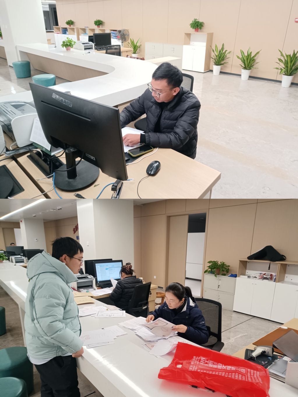由于登记过程中需核对完善多项产权数据,权调科第一时间联系测绘公司,协调技术人员连夜赶赴自然资源调查登记中心登记中心核对数据、修正相关信息;针对登记系统操作中的技术难点,登记一科同步对接技术服务公司,确保技术支持实时到位,保障登记流程顺畅推进。夜幕降临,龙游县政务服务中心自然资源调查登记中心登记窗口依旧灯火通明,工作人员分工协作、加班加点,对银团贷款抵押登记的相关材料进行逐一审核、录入、校验,全程紧盯进度、严控质量。