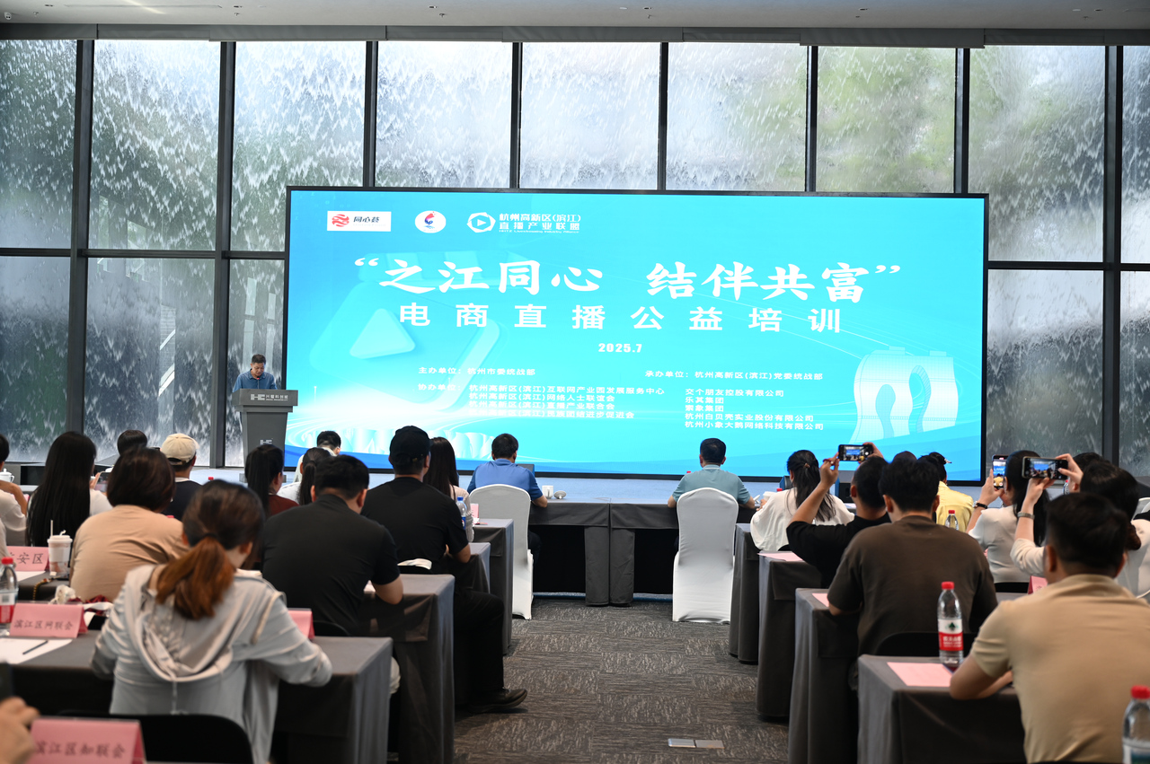 有了产业集群的硬支撑,更要有服务生态的软保障。滨江区委统战部连续三年开展“之江同心·结伴共富”公益培训,为26个帮扶区县培育电商人才5500余名,孵化创业网商300余家,让“授人以渔”的共富理念落地生根。“直播·同心荟”阵地精准覆盖直播人士联络、交流、服务需求,让统战凝聚力转化为发展向心力。直播产业联盟则联动品牌商、智库、融资机构等多方力量,打通技术、产业、人才融合通道,为帮扶地区提供从供应链搭建到运营落地的全链路支持。