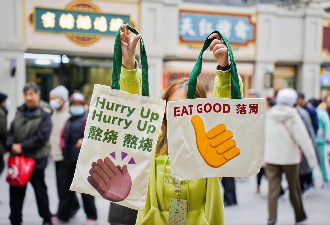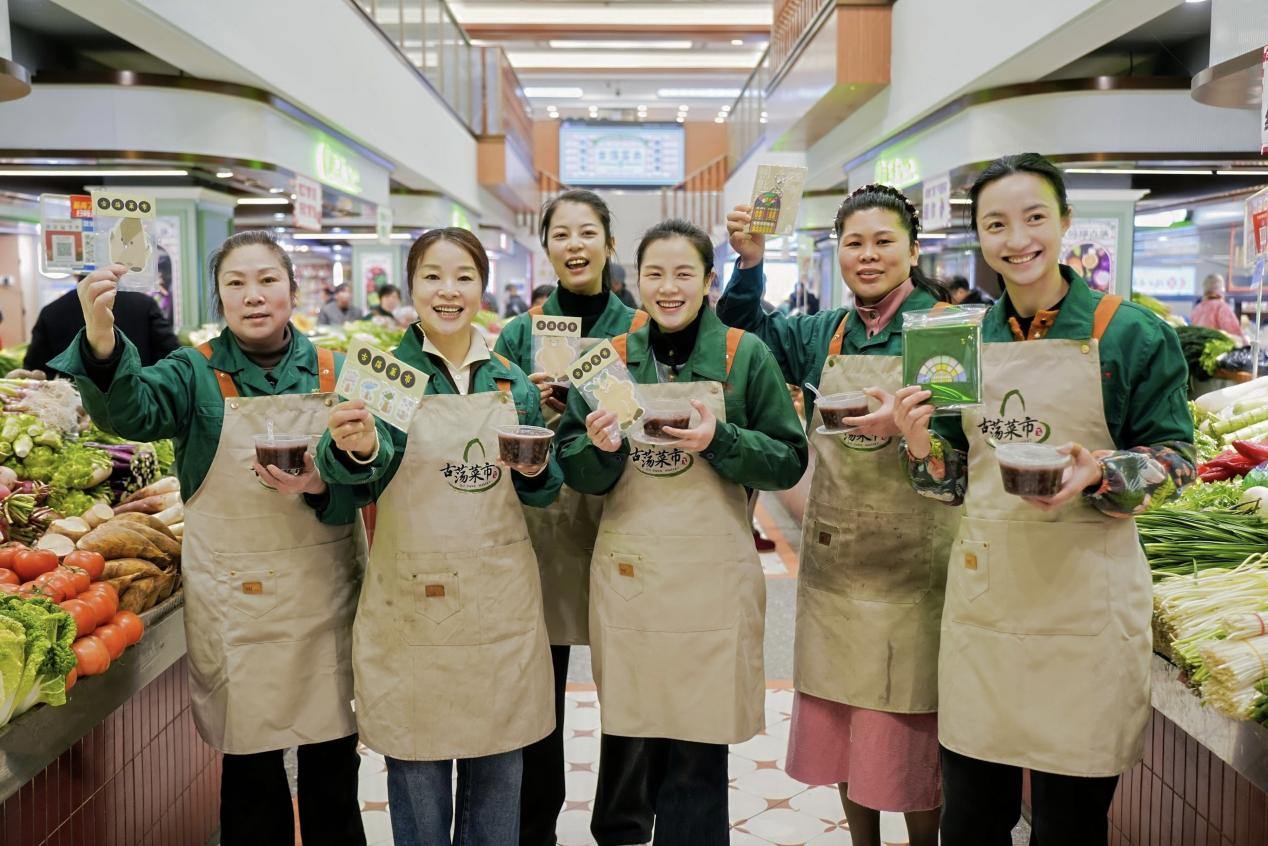 活动期间,市民在菜市消费满指定额度,即可获赠专属文创周边。西湖文创聚焦“古荡菜市”在地文化的深度挖掘与创意转化,以“贴合菜市使用场景、传递市井生活美学”为核心,围绕“实用型、纪念型、衍生型”三个大类,为古荡菜市量身定制了一系列主题文创产品。本次腊八节活动是它们的首次公开亮相,一经推出便收获不少关注。