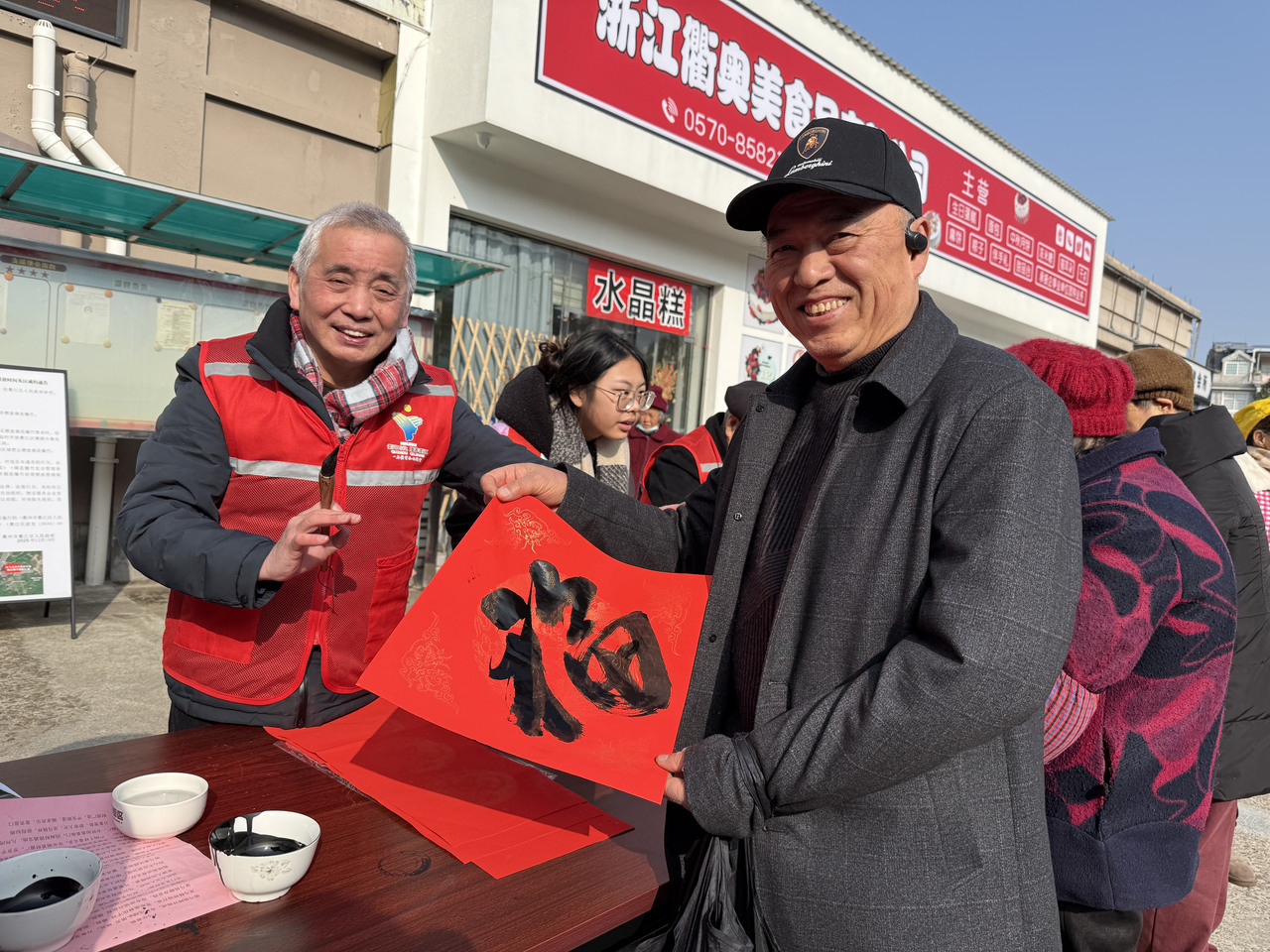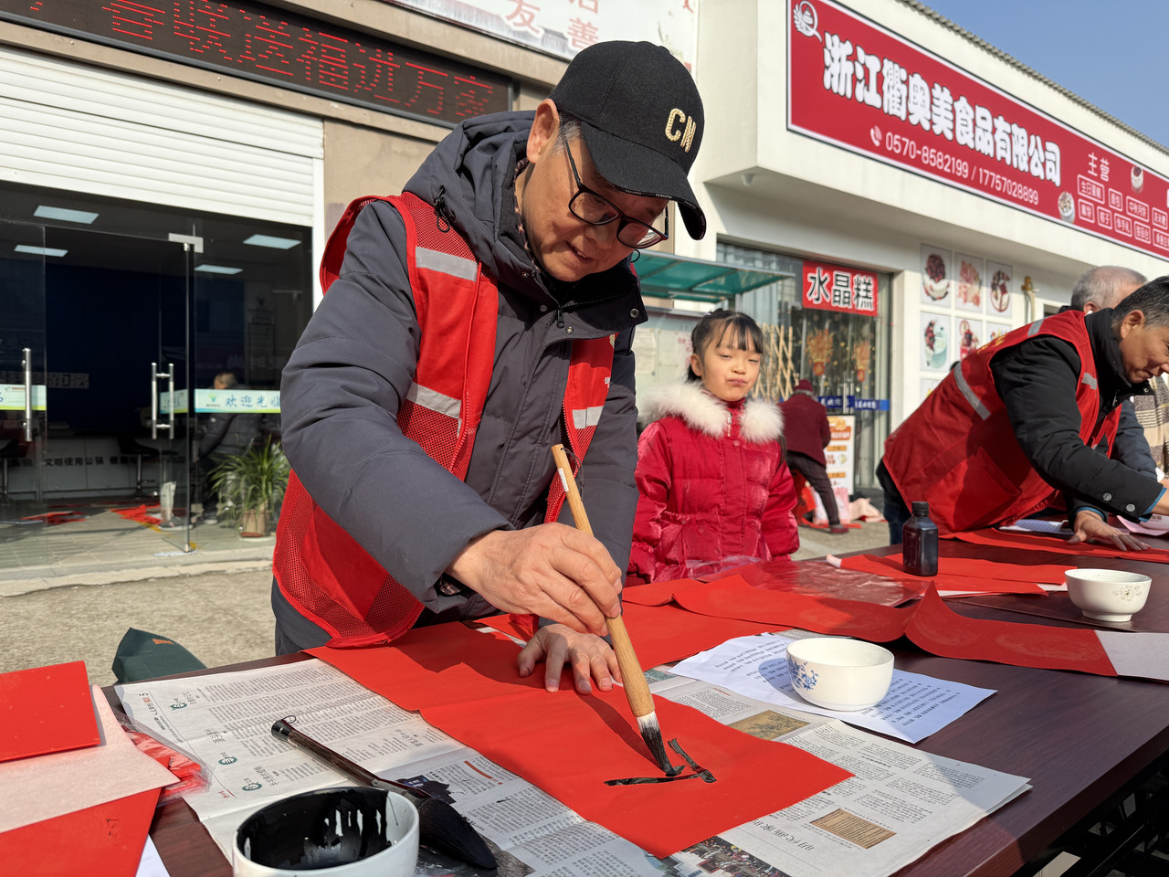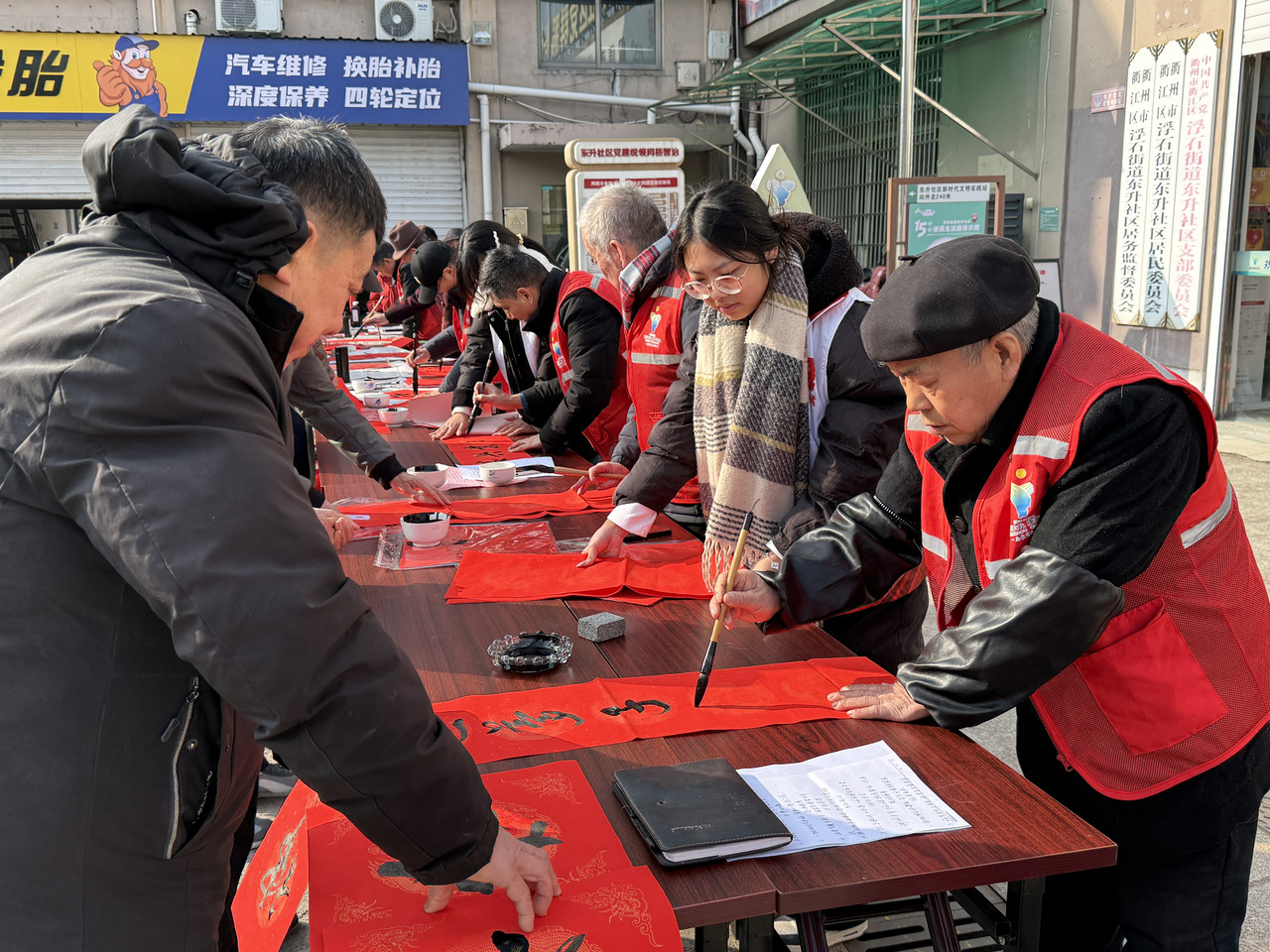 岁末春临,年味渐浓。2月3日上午,浮石街道东升社区党群服务中心门口暖意融融、热闹非凡,红彤彤的春联纸铺展如霞,墨香与欢声笑语交织弥漫。社区精心组织的写春联、送春联活动在此温馨上演,7名身着志愿红马甲的退休老干部化身“银发书法家”,以笔为媒、以字传情,为辖区居民送上饱含真挚祝福的新春“文化厚礼”。