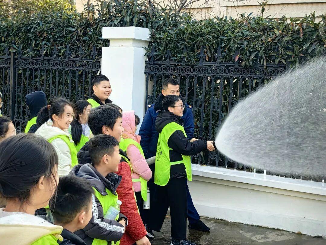 随后,在消防救援人员的指导下,孩子们纷纷登上消防云梯车,体验了高空救援。这一环节不仅让孩子们对消防设备有了深入了解,还激发了他们对消防员职业的向往和敬佩。