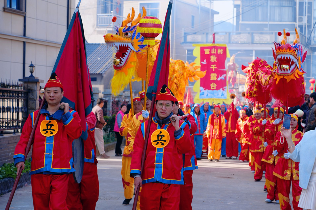 在富山村,这场纪念东汉方储诞辰的民俗盛会,将省级非遗富山秋千露台的独特魅力展现得淋漓尽致,八百余名村民与乡邻齐聚一堂,在非遗展演与民俗互动中,共赴一场穿越八百年的新春文化之约。作为富山村延续数十年的传统,这场祭祀不仅是对先祖的缅怀,更是非遗文化代代相传的精神纽带。