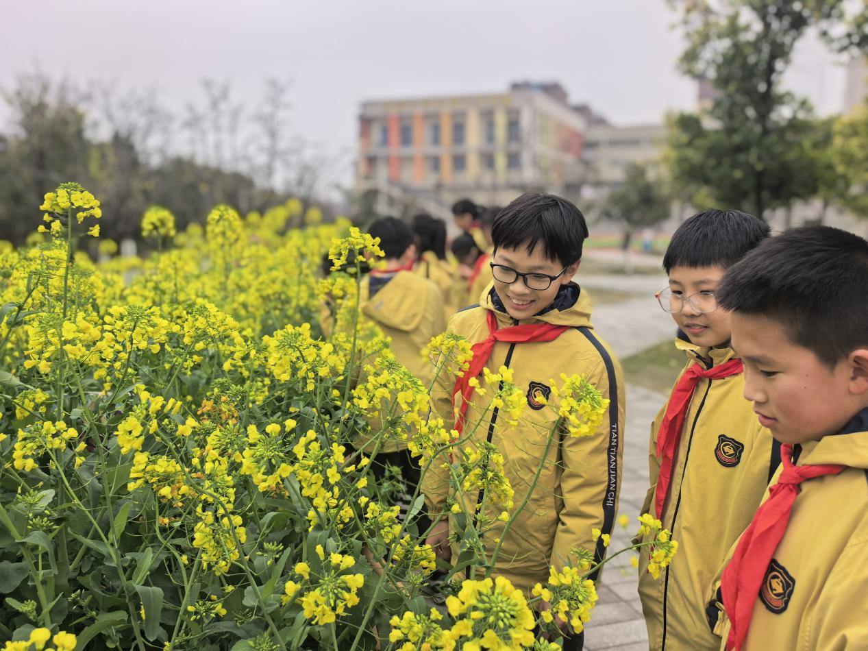 春阳暖照,万物勃发。3月4日,衢江育才小学劳动实践基地内一派生机盎然,金黄的油菜花缀满田埂,翠绿的白萝卜饱满挺拔,成为校园里最动人的春日图景。五(5)班的孩子们化身“小小耕耘者”,穿梭在田垄间,一边为盛放的油菜花除草护苗,一边驻足欣赏花海盛景,同时收获着亲手栽种的白萝卜,在躬耕实践中体悟劳动的价值与美好,让劳动教育在春日里落地生根、开花结果。