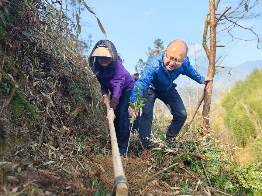 经过大家的辛勤劳作,一棵棵树苗错落有致地扎根于小山坡,迎风挺立,为春日的富文增添了蓬勃生机。此次活动共栽植各类苗木300余株,不仅有效改善了区域生态面貌,更以实际行动践行了生态优先、绿色发展的理念。
