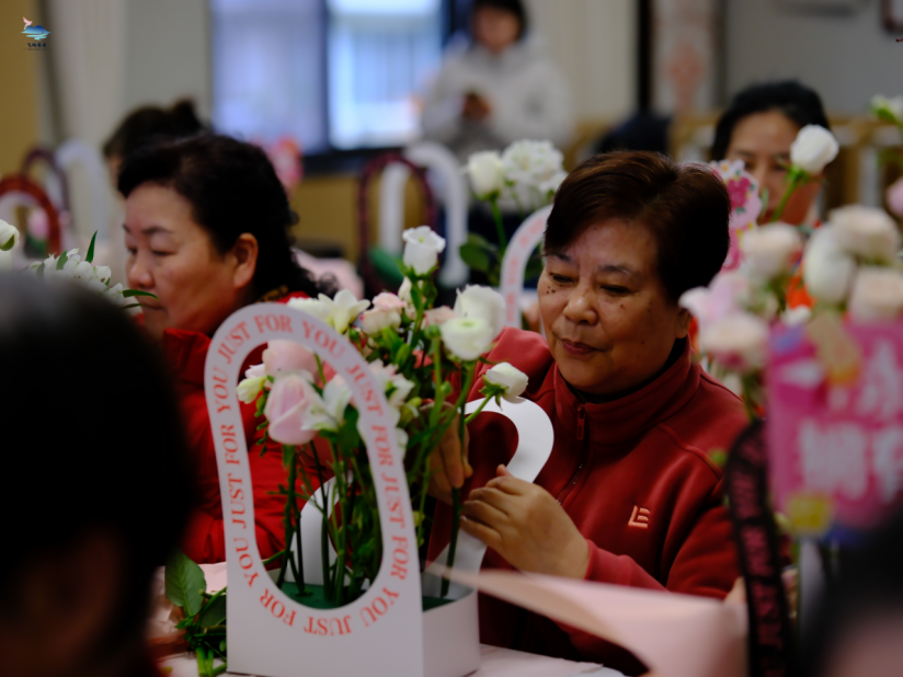 活动分为“芳馨敬贤”与“嘉木育福”两大环节,既藏敬意,更传绿意。“芳馨敬贤”环节中,社区企退自管组长化身花艺创作者,在专业指导下,用玫瑰、康乃馨、尤加利叶等自然枝叶,精心搭配出雅致花艺作品,以草木之美致敬荣退自管组长,将感谢与敬意融入指尖匠心,让绿色审美与邻里温情双向奔赴。