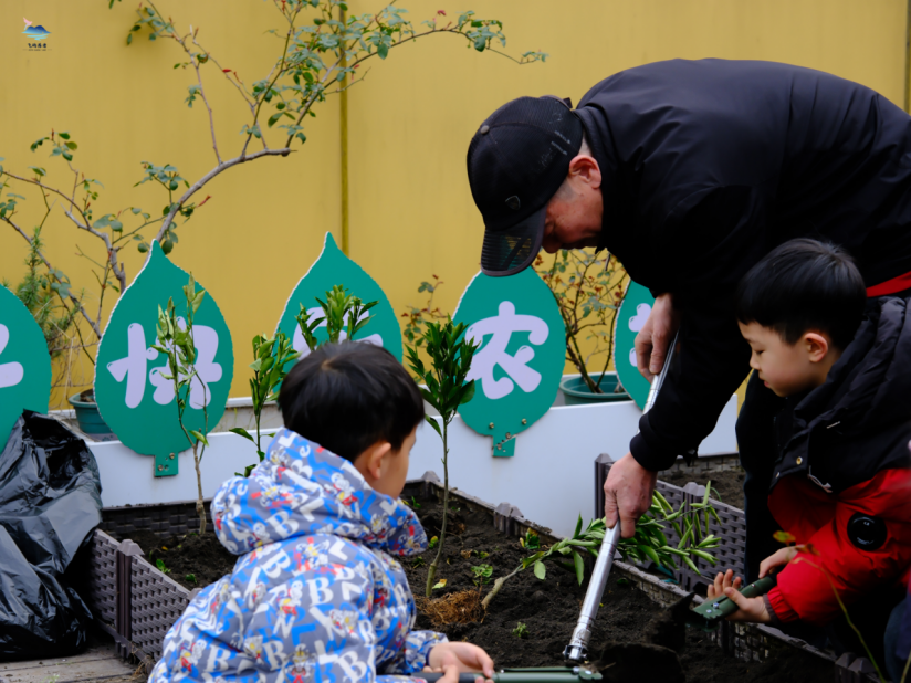 “嘉木育福”环节则成为代际共践环保的生动课堂。银龄达人、退役老兵与小朋友结对携手,共同栽种蓝莓、橘子等果树苗。长辈们言传身教,细致讲解苗木养护知识与种树技巧,传递绿色环保理念;孩子们认真聆听、动手实践,在挥铲培土间体验劳动乐趣,感受生命成长,将环保种子深埋心底。每棵果树上悬挂的专属树牌,不仅承载着结对情谊与美好祝福,更成为见证银龄育童、社区共护绿色的鲜活载体。