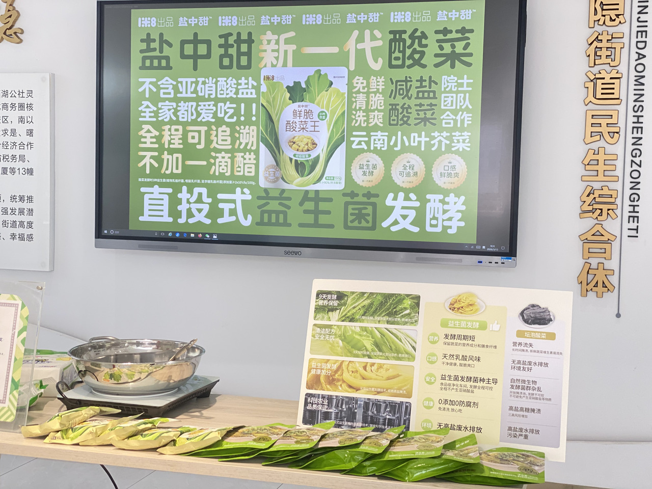 “奥秘就在于我们用的‘活菌’发酵技术。”企业代表适时补充道,“它依托南昌大学谢明勇院士团队筛选的专利益生菌,采用曾获国家科技进步二等奖的‘直投式植物基益生菌发酵’技术。简单说,就是把好菌直接投进去‘占位’,让杂菌进不来。所以仅需9天就能完成发酵,盐含量能控制在3%以下,实现0防腐剂、0亚硝酸盐产生,还能最大程度保留蔬菜本身的营养和清甜。酸的柔和,层次丰富,也不用担心传统腌菜因高盐带来的健康风险。”