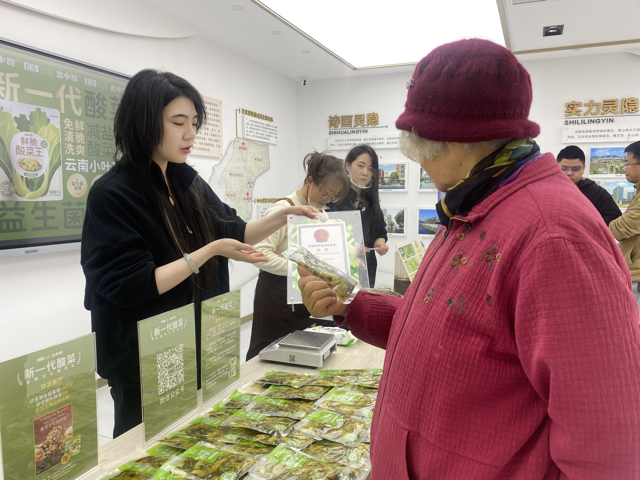 “盐少了,味道会寡淡吗?这还叫腌菜吗?”“不放防腐剂,能放得住?”面对居民的疑惑,工作人员没有急于用术语解释,而是直接打开产品,邀请大家现场品鉴。