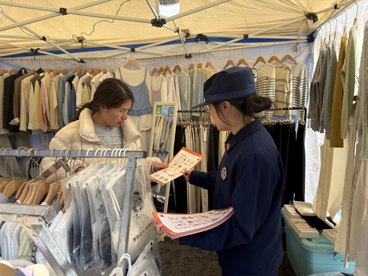 “阿姨,摊位上不要私拉乱接电线”“大爷,电动车不要进楼入户充电”......磐安消防救援大队宣传员穿梭在摊位之间,向过往群众和摊主发放图文并茂的《家庭防火常识》、《电动自行车安全使用指南》等宣传资料,提醒大家日常生活中要做到“三清三关”,时刻注意用火用电用气安全。针对农村地区留守老人多、消防意识相对薄弱的现状,宣传员用方言以“拉家常”的方式,耐心细致地讲解如何预防家庭火灾、如何正确使用灭火器、如何扑救初期火灾以及发生火灾后如何逃生自救等消防安全常识。