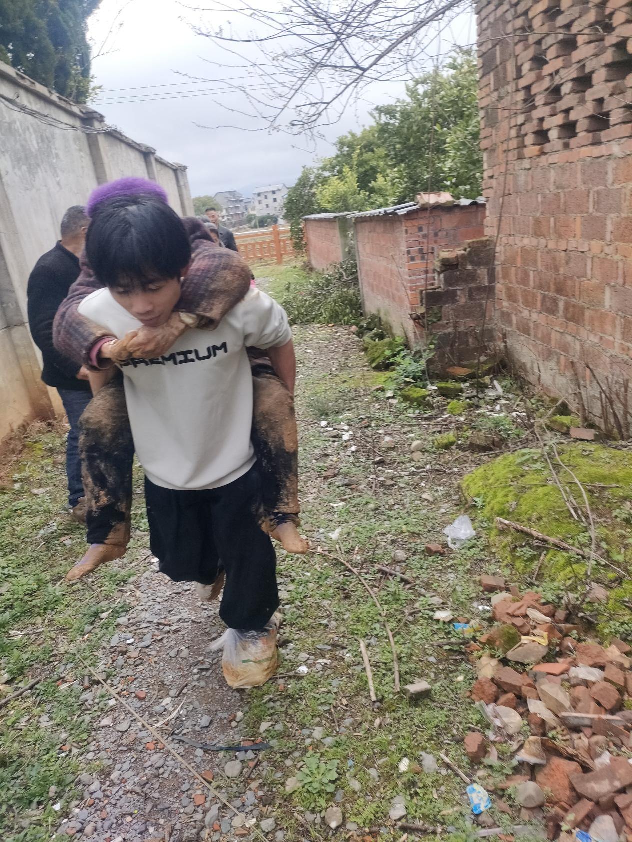 3月19日上午,大桥头乡大桥村村干部黄斌斌、符嘉豪,严格按照全乡民情巡航“两步路”网格巡查工作机制要求,深入村内各重点路段、关键点位开展常态化例行巡查。当行至村中心小学屋后路段时,敏锐发现一名高龄老人不慎摔倒在路边泥泞处,无法自主起身。两人第一时间快步上前查看,经仔细确认,老人系本村93岁高龄的郑娜片老人。通过耐心询问得知,老人因记错日期,当日匆忙出门前往教堂,恰逢雨后路面湿滑泥泞,脚下不稳不慎摔倒,加之年事已高,体力不支难以自行站起。