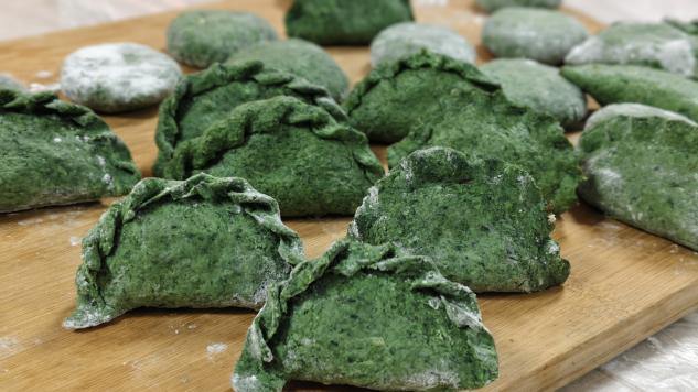 活动一开始,老人们便三五成群,自发组成了“揉粉团”“包馅组”“创意造型组”。揉面的揉面,分馅的分馅,你一言我一语,手上功夫却一点不含糊。丁奶奶把青团捏成饺子形状、小元宝,惹得大家连连称赞;肖叔叔头回上手,虽然包得“露了馅”,却惹来一阵善意的笑声。咸蛋黄配肉松的“黄金搭档”最受欢迎,豆沙馅则稳稳占据“甜党”心头好。