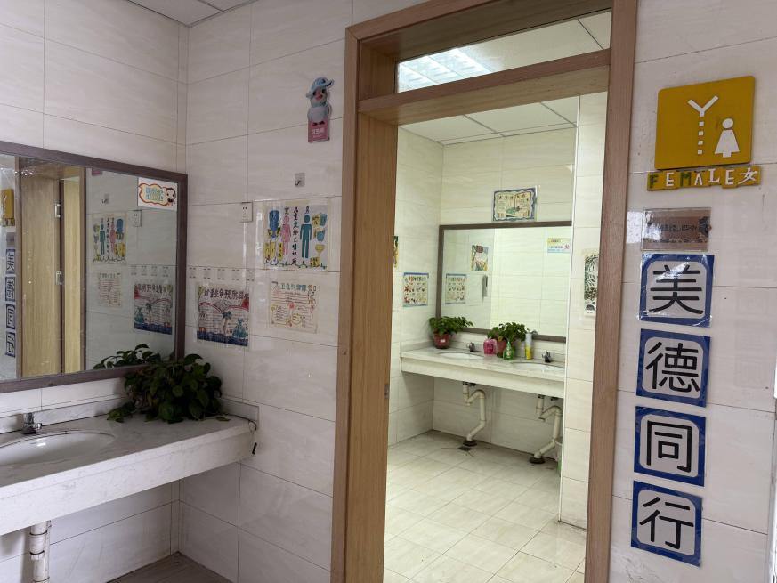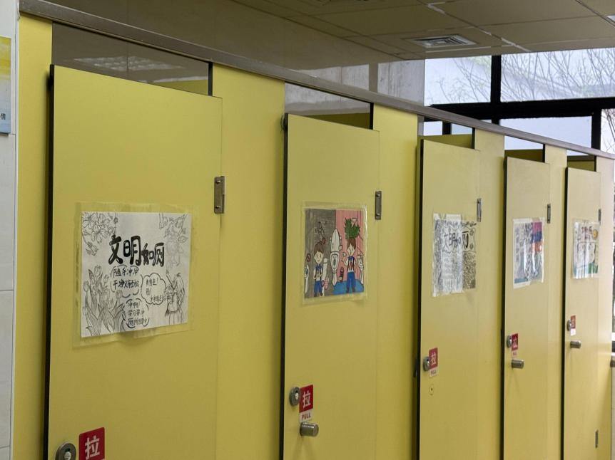 色彩明快的卡通手绘,将讲卫生、懂礼貌的小知识化作生动有趣的画面;温馨质朴的提示标语,用童真话语提醒大家文明如厕、爱护公物;清晰规范的七步洗手法图示,手把手传递健康生活常识;工整雅致的诗词书法与主题手抄报,将传统文化与文明理念巧妙融合……一件件充满童趣的作品,被精心布置在各楼层卫生间的墙面、门板之上,让原本平淡的厕所空间焕然一新,处处洋溢着童真与文雅,步步皆能感受文明熏陶。