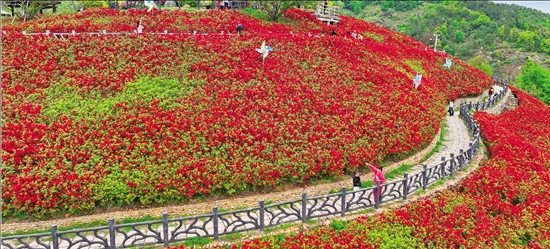 4月7日,金华市金东区曹宅镇横腊村漫山杜鹃次第绽放,如云似霞,吸引各地游客纷至沓来。今年,当地新增打卡点、升级特色民宿和餐厅等,推动“半日赏花”向“深度微度假”转型,进一步激活乡村发展活力。