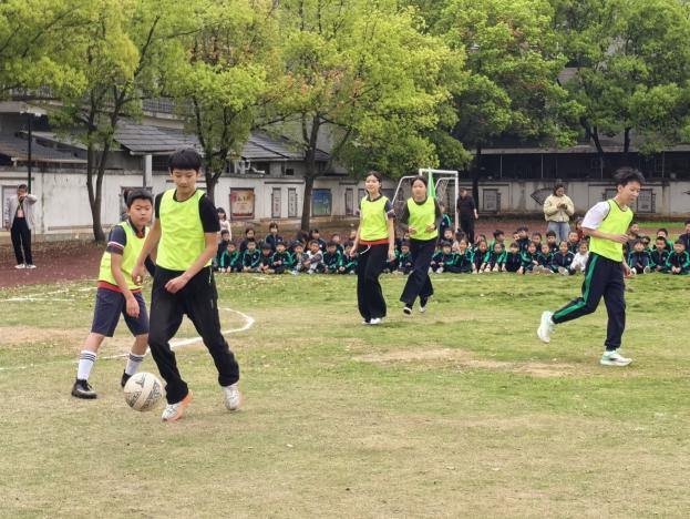 4月8日大课间,衢江区实验小学教共体·杜泽小学第一届“巽峰杯”班级足球超级联赛开幕式在校园足球场隆重举行,全校师生齐聚赛场,共同见证这场校园体育盛会正式启幕。