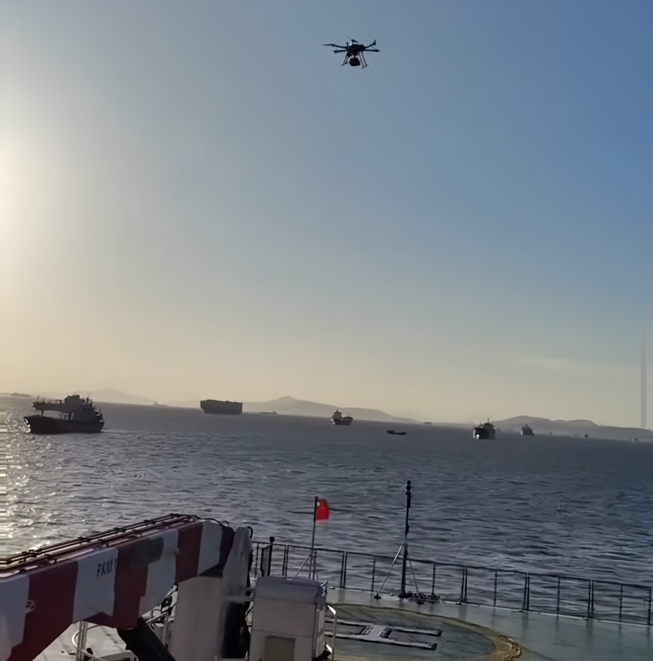 无人机“外卖”飞上锚地。由受访单位供图