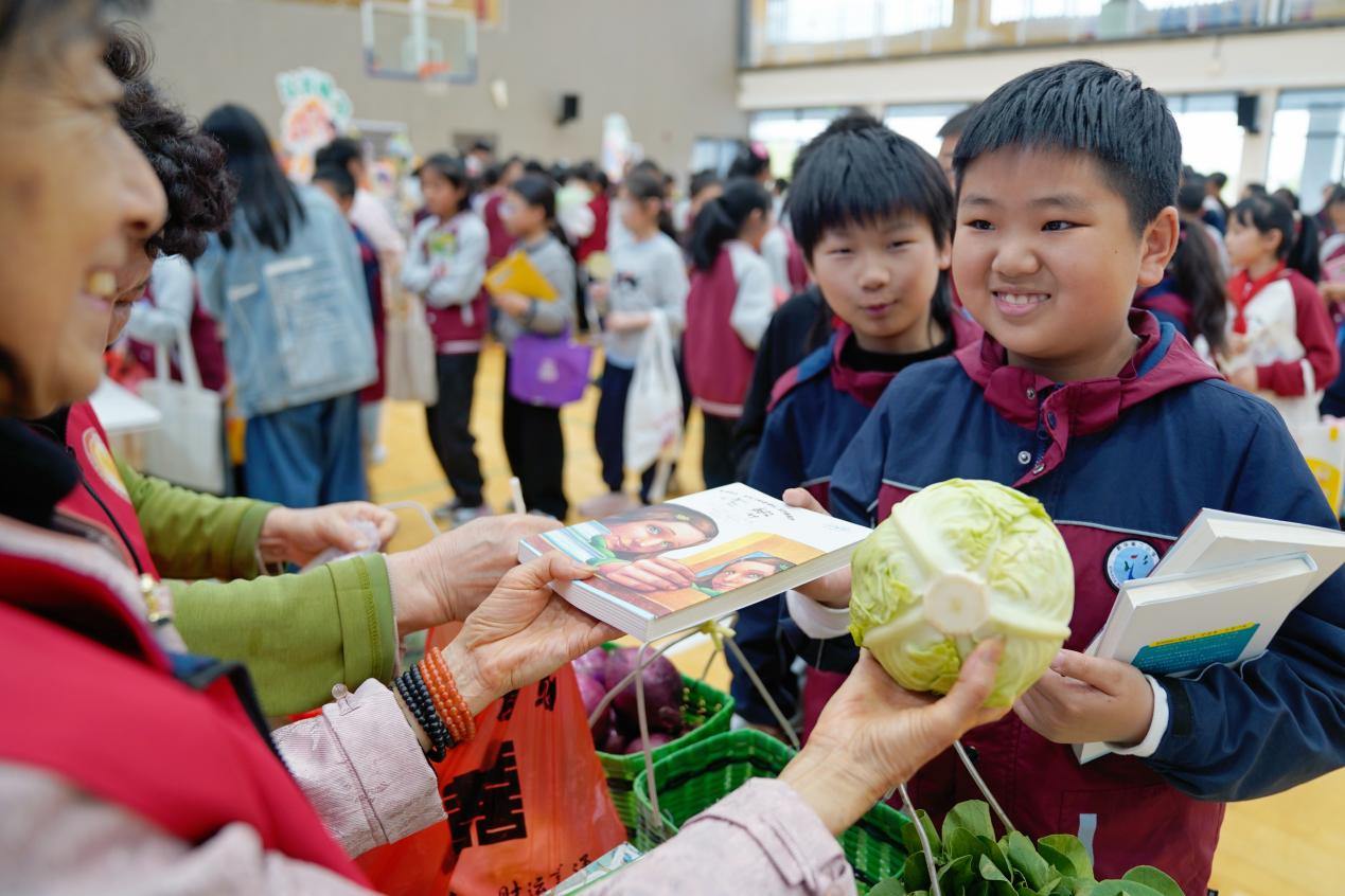 活动现场热闹启幕,衢州中专信安龙舞点燃氛围,师生、家长、居民代表依次上台分享读书故事与感悟,白云街道团委同步发出全民阅读倡议,凝聚共建书香家园共识。现场设置以书换书、以书换蔬、以书换树、以书换舒四大特色摊位,联动高校、图书馆、多所幼教单位带来知识问答、非遗手作、文创兑换等趣味体验,孩子们手持闲置书籍沉浸式参与,在互动玩乐中爱上阅读、收获成长。