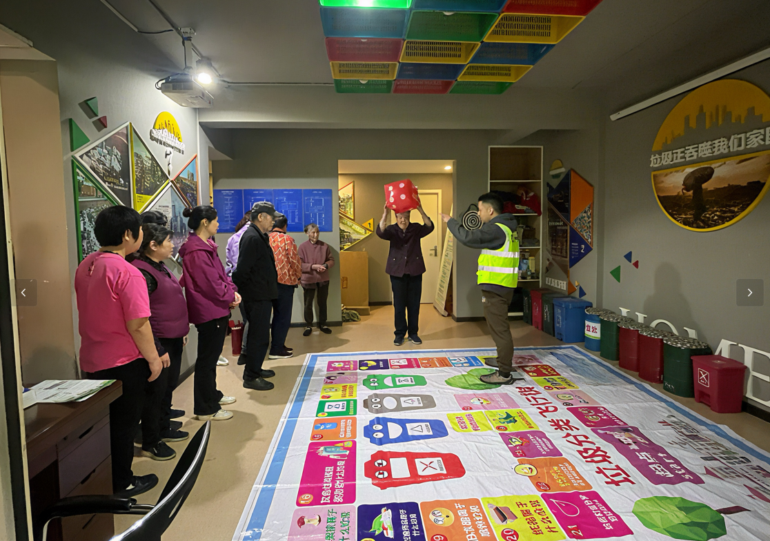 为普及垃圾分类知识、倡导绿色生活方式。近日,上城区紫阳街道甬江社区联合尚城智享生活服务有限公司、洁洁城市管理有限公司,在“水岸枫亭·幸福驿家”星级再生网点开展了一场垃圾分类主题宣传活动。活动将知识讲解融入游戏互动,吸引众多居民到场参与。