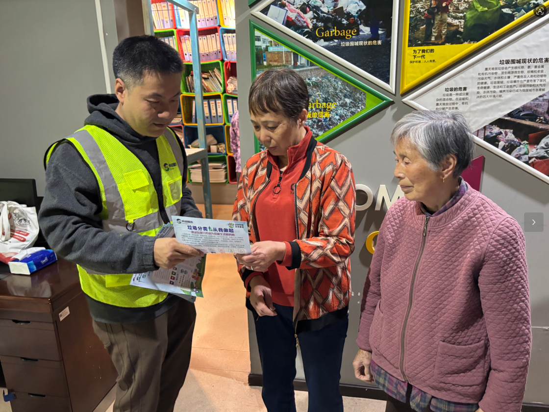 活动伊始,志愿者引导居民走进“幸福驿家”回收网点实地参观,并结合现场讲解,让大家直观了解分类流程与意义。随后,通过闯关问答、互动体验等环节,帮助居民在轻松氛围中掌握分类要点。