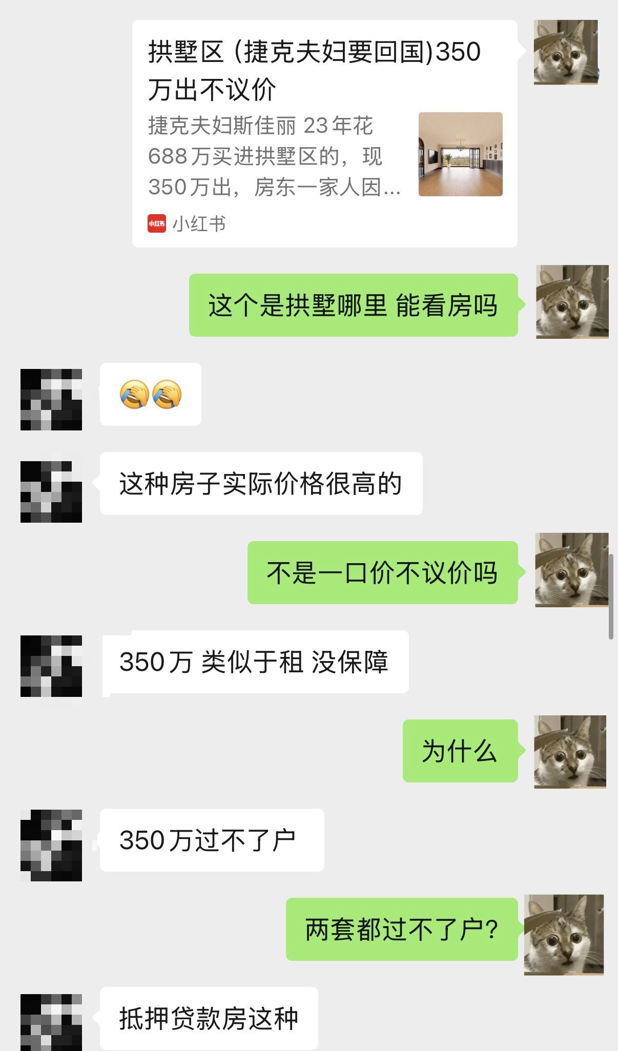 对方回复:“房子还在的,但这套是抵押贷款,过不了户的,风险较大。拱墅区新房考虑吗?”
