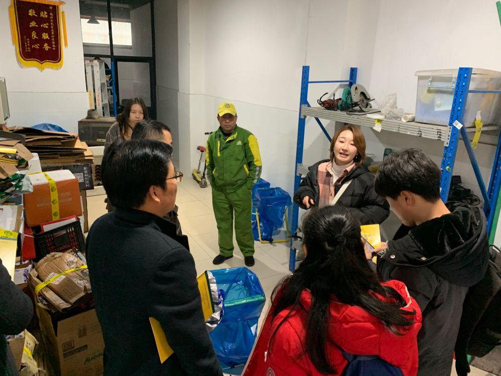 图为专家学者和媒体一行在虎哥回收的荷花塘社区服务站参观